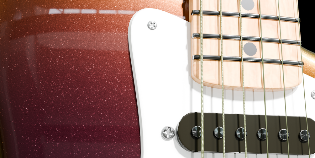Utilizes a three-layer system. Base coat, metallic flakes, and a clear top coat